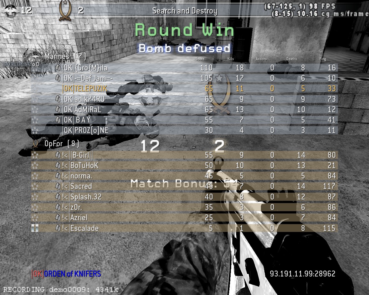 ![]() Итак, за 2 дня орден одержал 5 побед. Все кв были выиграны одинаково. Счет во всех пяти случаях составляет 2 : 0 в пользу ордена. Ну и как водится, выражаю благодарность всем принимавшим в игре участие. |OK| VS L2W |OK| VS KV |OK| VS !<| | |